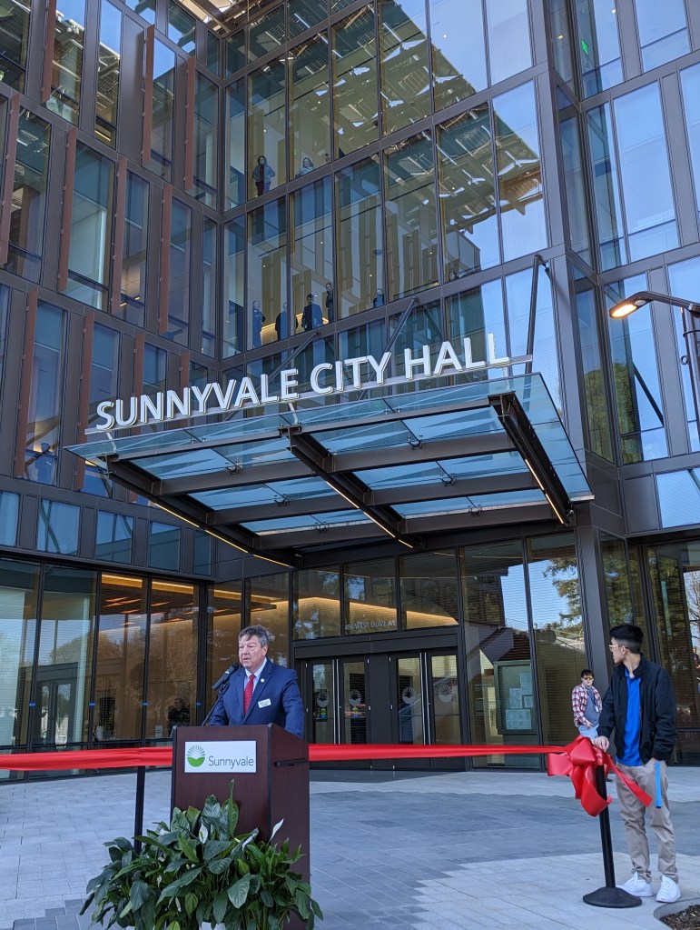Monday, April 3, 2023, was a cold and windy morning in the city of Sunnyvale, where city staff, local political leaders, and the press assembled in the shadow of Sunnyvale’s new City Hall to cut the ribbon on what is likely the nation’s first building to be both be certified LEED Platinum and achieve Net Zero Emissions.